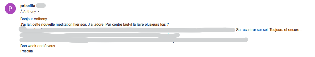 J’ai réalisé que beaucoup de gens, comme toi et moi, ne savent pas par où commencer pour se libérer du stress durablement. C’est pourquoi j’ai créé cette plateforme : simple, guidée, à portée de clic, pour que tout le monde puisse bénéficier de ces pratiques apaisantes, sans contrainte ni gros budget.